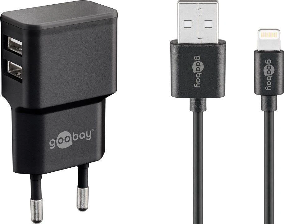 Goobay Netzteil mit 2x USB Anschlüssen Lightning Kabel 1 m Schwarz