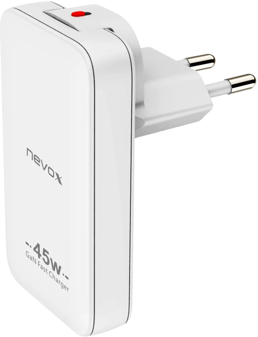 Nevox USB C PD / PPS + QC3.0 GaN Dual Ladegerät EU / US Stecker 45Watt Weiß